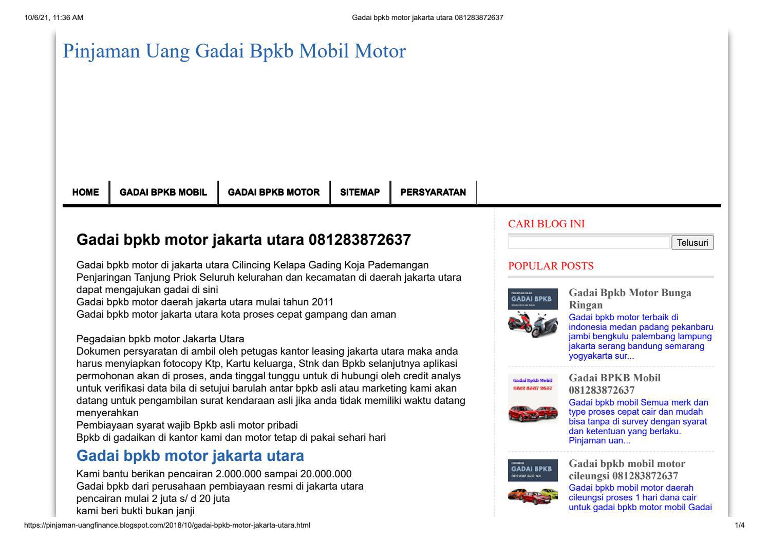 Gadai Motor Tanpa BPKB Bagi anda yang hendak mencari tempat gadai motor di wilayah Jakarta, Bekasi, dan Bandung tentu bukan perkara sulit. Pasalnya berbagai lembaga seperti perusahaan multifinance, perbankan, hingga PT Pegadaian juga memiliki pelayanan di wilayah tersebut. Leasing Gadai BPKB Motor dan Mobil Daerah Yogyakarta Proses Exspress Di tempat kami tidak hanya memberikan pelayanan yang cepat, tapi juga bunga sangat ringan, persyaratan mudah dan proses tidak berbelit-belit untuk gadai bpkb mobil dan motor. Data yang paling sulit sekalipun dapat kami bantu untuk cairkan karena kami menerapkan simple documentsehingga tidak memerlukan syarat yang panjang ...