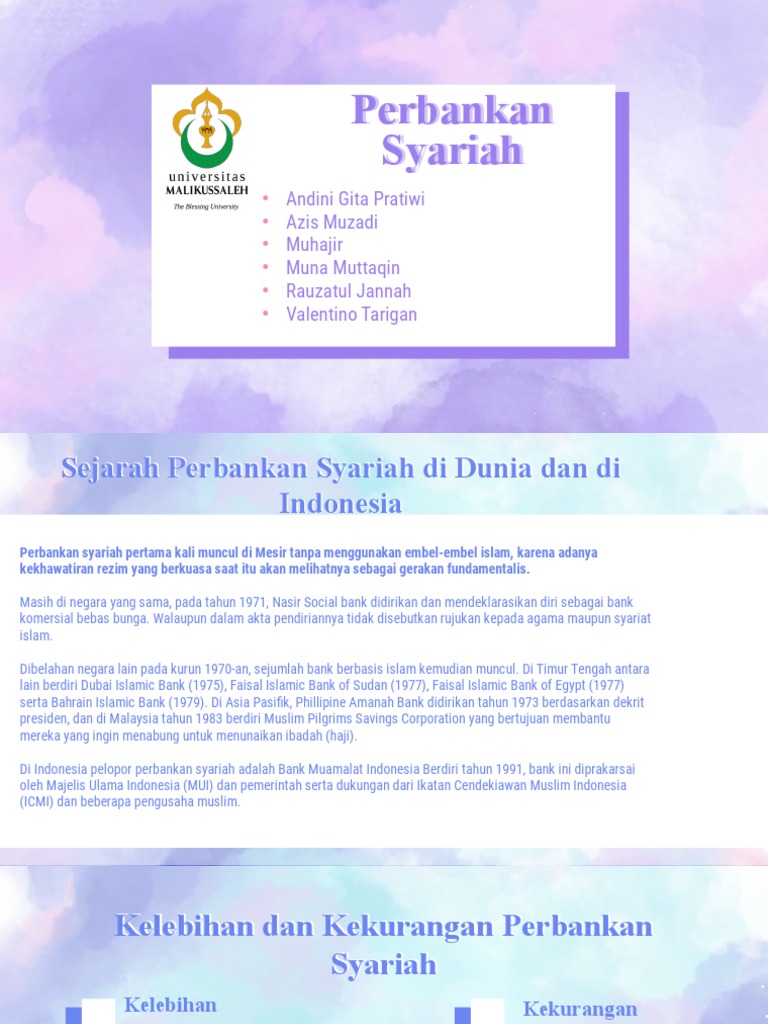 Apr 23, 2016 · Kelebihan dan Kekurangan Bank Syariah Bank syariah menurut Karnaen Perwataatmadja dan M Syafi’I Antonio, penulis buku “Apa Dan Bagaimana Bank Islam” : kelebihan bank syariah terutama pada kuatnya ikatan emosional keagamaan antara pemegang saham,pengelola bank,dan nasabahnya.Dari ikatan emosional inilah dapat dikembangkan kebersamaan dalam menghadapi risiko usaha dan membagi keuntungan secara jujur dan adil. Apr 29, 2016 · Kelebihan dan Kekurangan Bank Syariah. 2) Kelebihan Bank Syariah. a. Keunggulan Bank syariah terutama pada kuatnya ikatan emosional keagamaan antara pemegang saham, pengelola bank, dan nasabahnya. Dari ikatan emosional inilah dapat dikembangkan kebersamaan dalam menghadapi resiko usaha dan membagi keuntungan secara jujur dan adil. Tugas perbankan syariah UAS. 1. TUGAS MATA KULIAH PERBANKAN SYARIAH Dosen : Shinta Melzatia, SE. M.Ak Disusun oleh : Devia Rizki Wulandari 43216120263 Nurul Fitrah Ramadhani 43216120257 JURUSAN AKUNTANSI FAKULTAS EKONOMI DAN BISNIS UNIVERSITAS MERCU BUANA JAKARTA 2107. 2.