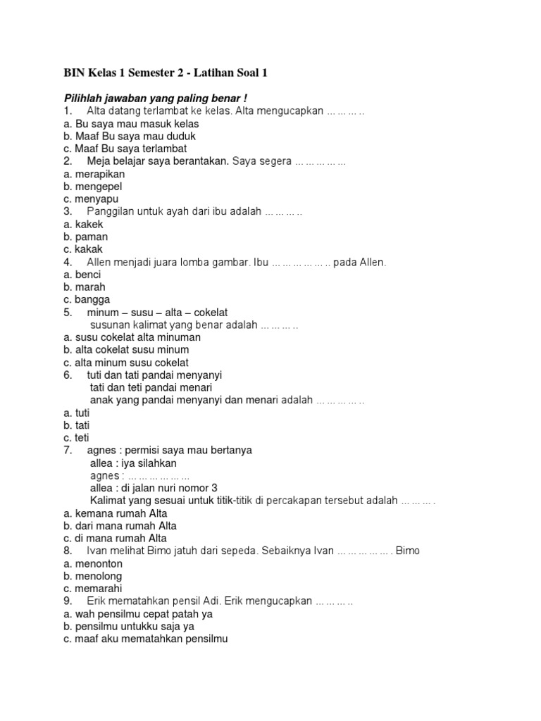 Bank soal sd kelas 1 semester 1