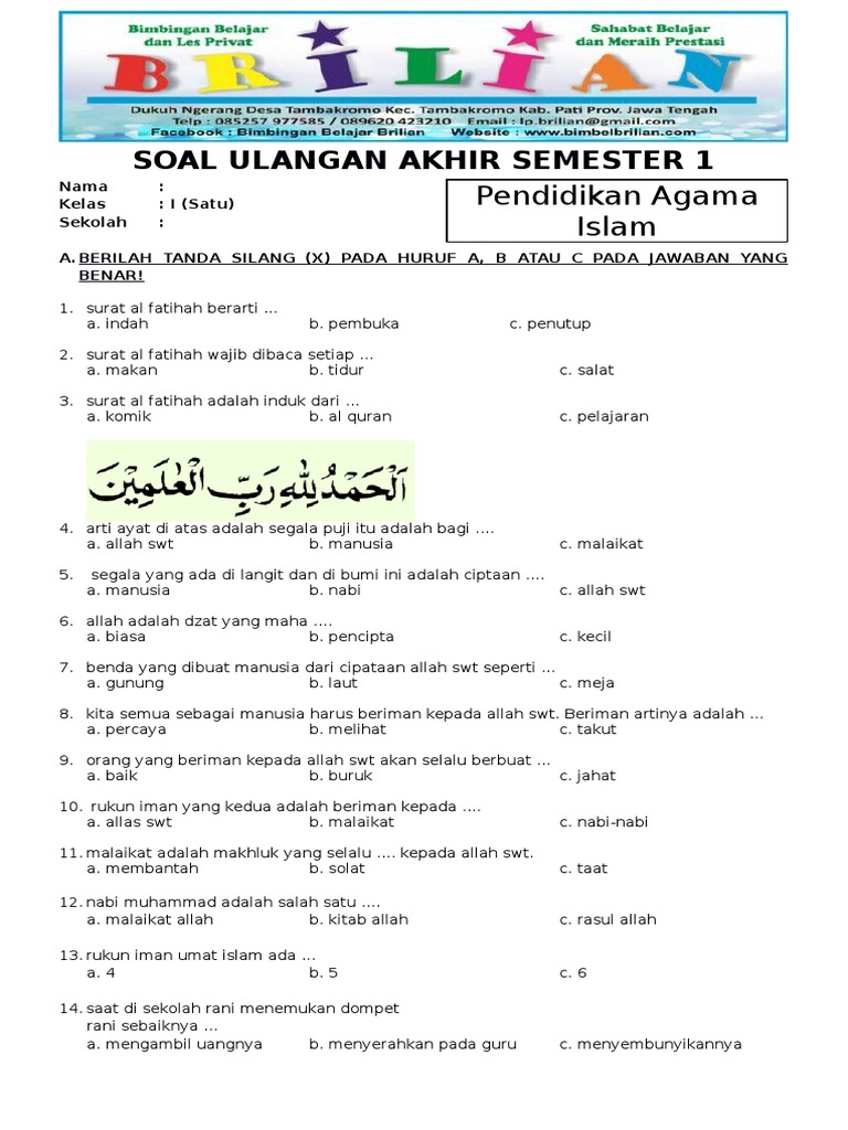 Contoh Soal Matematika Kelas 3 Sd Tentang Waktu. Hanya saja pada matematika SD kelas 3 masih menggunakan operasi hitung yang sederhana. Memilih alat... Bank Soal SD ini dapat menjadi referensi belajar peserta didik kelas 6 SD dalam mengikuti pembelajaran tematik SD Semester 1 Tahun Pelajaran 2021/2022.. Penilaian hasil belajar oleh pendidik bertujuan untuk mengukur pencapaian kompetensi belajar peserta didik. Di dalam Kurikulum 2013, penilaian hasil belajar dilakukan secara terencana dan sistematis. Kumpulan Soal Sd Kelas 1 Pdf. Februari 16, 2021. Contoh file materi plpg sertifikasi guru tahun 2016 terlengkap semua bidang studi gratis. Kumpulan soal matematika kelas 1 sd pdf terdapat banyak permasalahan yang bisa saja timbul dari masuknya anak kita di jenjang 1 sekolah dasar. Soal Uts Bahasa Arab Kelas 4 Semester 2 Kurikulum 2013 Calfasr. Jika ada kesalahan link tautan pada soal-soalnya atau kesalahan lainnya. Kami mohon bapak/ibu semua bisa segera memberikan komentar. Semoga bank soal kelas 1 SD kurikulum 2013 untuk semester 1 (ganjil) ini bisa bermanfaat dan berguna bagi bapak/ibu dalam mendampingi putra-putrinya belajar di rumah.