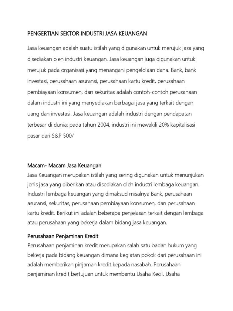 Contoh Perusahaan jasa keuangan di Indonesia dari jasa keuangan, teknologi, transportasi, dan pendidikan. ... Keuangan adalah salah satu aspek penting dalam perekonomian negara kita. ... Perusahaan asuransi bisa dibilang sebagai lembaga yang bertugas mengelola investasi dana dan mengalokasikannya sesuai dengan perjanjian dengan nasabah.