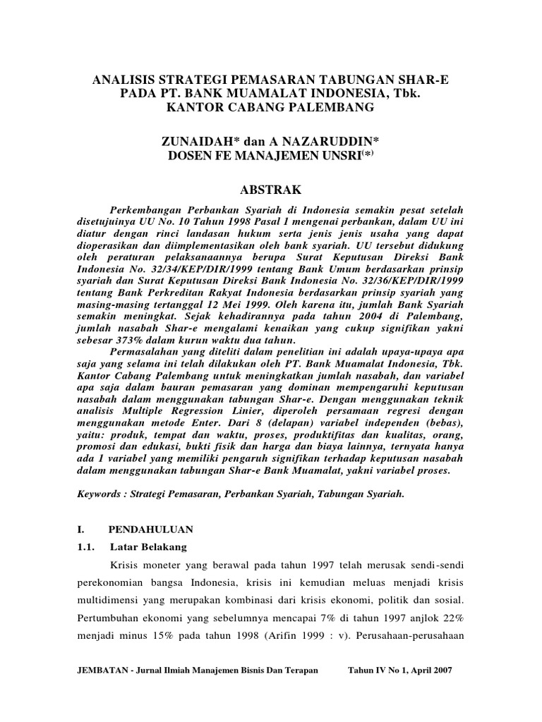 syariah dengan bank kon vesional sehingga perlu adanya strategi didalam pemasaran masing- masing bank tersebut. Pemasaran sering pula diidentikkan dengan dunia y ang penuh janji manis namun belum...