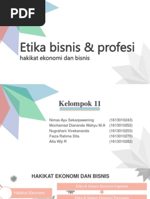 MAKALAH ETIKA BISNIS DAN PROFESI "Hakikat Ekonomi dan Bisnis" Kelompok V Masrina Erika wati Latifa fadillah Asmawarni Jurusan akuntansi Fakultas ekonomi dan bisnis Universitas muhammadiyah makassar 2016 KATA PENGANTAR Puji syukur kami panjatkan kehadirat Tuhan Yang Maha Esa karena dengan rahmat, karunia, serta taufik dan hidayah-Nya kami dapat menyelesaikan makalah tentang "Hakikat ...