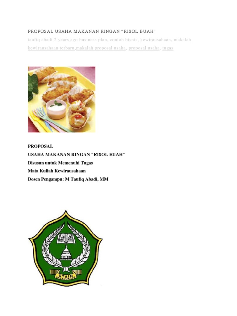 Contoh Proposal Usaha Makanan Unik Dan Kreatif Temukan Conto.