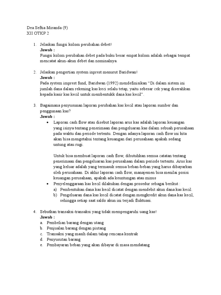 31 Jelaskan Prosedur Permintaan Dan Pertanggungjawaban Pengeluaran Dana Kas Kecil. 2 dalam perusahaan kecil pos pos debet dapat berasal dari voucher register jurnal pembelian buku pembelian atau dari perincian faktur faktur terpisah dari prosedur jurnal ataukah catatan harian. Menerima bukti pengeluaran kas kecil bukti pendukung dan surat ...