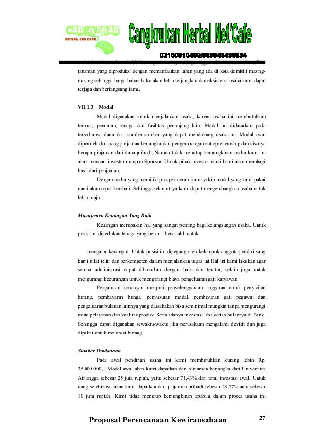 Contoh proposal usaha atau contoh proposal bisnis berikut ini dapat membantu kamu mulai membuat rancangan bisnis mu. Lengkap dengan analisis-analisis kewirausahaan dengan berbagai bidang usaha. selengkapnya dalam artikel ini. Sebelum memulai sebuah bisnis atau usaha harus dilakukan perencanaan agar bisnis yang kita lakukan bisa berjalan dengan lancar sesuai dengan target yang ingin dicapai.