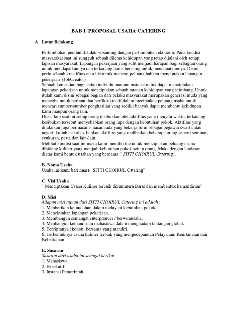 8 Contoh Proposal Bisnis Terbaik Yang Layak Ditiru. Inilah beberapa contoh proposal bisnis yang cocok untuk plan usaha makanan atau jasa. Kamu bisa download proposal bisnis dan membuatnya. Salah satu kunci sukses dalam berbisnis tidak lepas dari keahlian dalam menyusun plan bisnis dengan baik. Plan atau proposal bisnis bisa diartikan sebagai ...