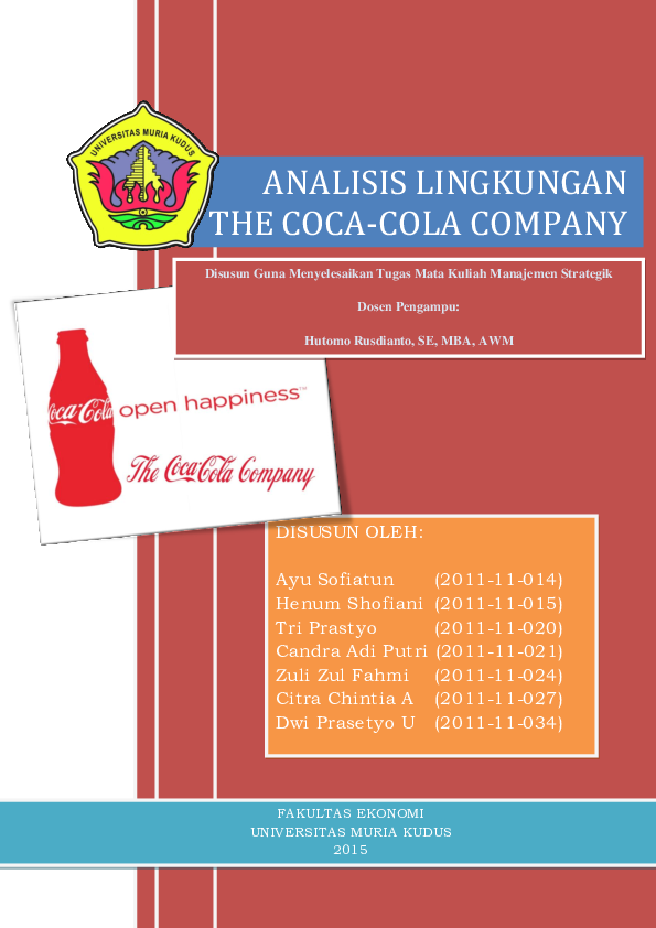 Nov 06, 2017 · PT. Coca-Cola Amatil Indonesia merupakan anak perusahaan The Coca-Cola Company yang memiliki merek dagang Coca-Cola. PT. Coca-Cola Amatil Indonesia telah berdiri dan mulai berkiprah dalam industri dalam negeri sejak tahun 1927, dimana pada saat itu bernama De Nederland Indische Mineral Water Fabrieck yang kemudian berubah nama menjadi The Indonesian Bottles Ltd. N. V. (IBL) sejak berubah ...