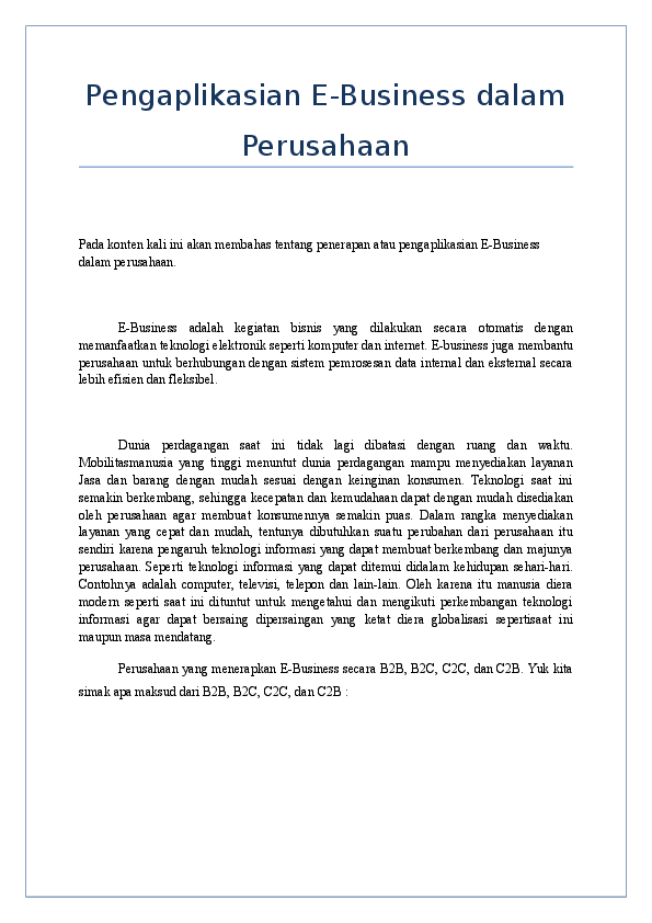 Jan 29, 2016 · Penerapan e business pada perusahaan di indonesia diaplikasikan dalam beberapa sistem perusahaan yang meliputi. Maka menurut timmmers perussahaan tersebut termasuk dalam model e bisnis jangka panjang karena perusahaan tersebut masih akan terus berdiri selama konsumen masih banyak yang menikmati minuman tersebut selain itusaham coca cola tidak hanya di pegang oleh satu orang.