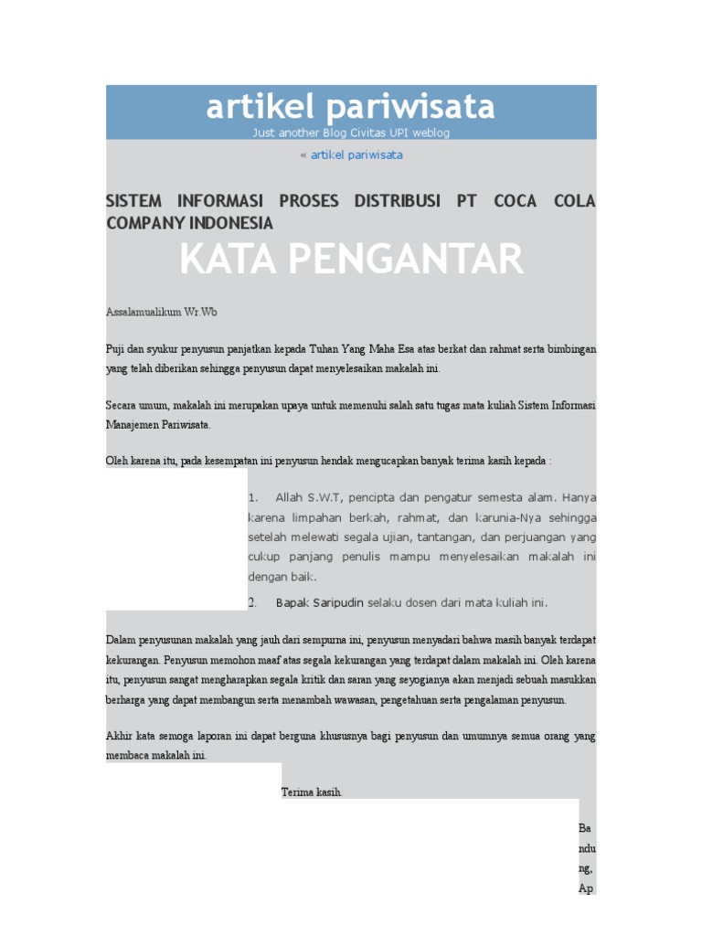 PT. Coca-Cola Bottling Indonesia (CCBI) merupakan suatu badan yang berbentuk perseroan terbatas yang bergerak di bidang usaha produksi minuman ringan. Perusahaan Coca-cola di Jawa Tengah dirintis oleh dua orang pengusaha yaitu Bapak Portogtius Hutabarat (alm) dan Bapak Mugijanto. Seiring dengan perkembangan perusahaan maka pada bulan April 1992 PT. Nov 06, 2017 · PT. Coca-Cola Amatil Indonesia merupakan anak perusahaan The Coca-Cola Company yang memiliki merek dagang Coca-Cola. PT. Coca-Cola Amatil Indonesia telah berdiri dan mulai berkiprah dalam industri dalam negeri sejak tahun 1927, dimana pada saat itu bernama De Nederland Indische Mineral Water Fabrieck yang kemudian berubah nama menjadi The Indonesian Bottles Ltd. N. V. (IBL) sejak berubah ... About Press Copyright Contact us Creators Advertise Developers Terms Privacy Policy & Safety How YouTube works Test new features Press Copyright Contact us Creators ...