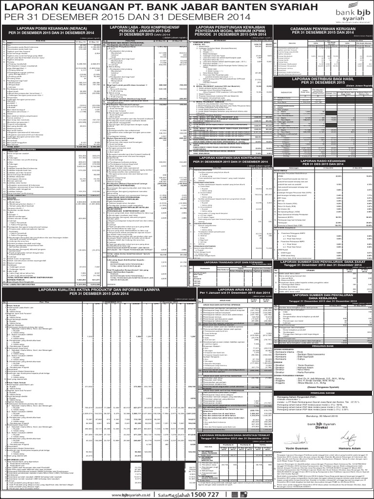 Bank BJB - Wikipedia bahasa Indonesia, ensiklopedia bebas Bank BJB (IDX: BJBR, nama digayakan dengan huruf kecil semua, dahulu dikenal dengan Bank Jabar Banten) adalah bank BUMD milik Pemerintah Provinsi Jawa Barat dan Banten yang berkantor pusat di Bandung.Bank ini didirikan pada tanggal 20 Mei 1961 dengan bentuk perseroan terbatas (PT), kemudian dalam perkembangannya berubah status menjadi Badan Usaha Milik Daerah (BUMD). PEFINDO | PT Pemeringkat Efek Indonesia PEFINDO upgraded the ratings of PT Bank Jabar Banten from "idA+" to "idAA-". 10 Jun, 2010: PEFINDO affirmed its "idA+" ratings for PT Bank Jabar Banten. 25 May, 2009: PEFINDO affirmed its "idA+" ratings for PT Bank Jabar Banten (BPJB or the Bank), the Bank's Bonds IV/2004 and Bonds V/2006. 28 Nov, 2008 (PDF) PT BANK JABAR BANTEN SYARIAH | ANNISA A a - Academia.edu The auditor independen lain yang laporannya tertanggal opening balance sheet of PT Bank Jabar Banten 5 Agustus 2010 menyatakan pendapat wajar tanpa Syariah dated May 5, 2010 was audited by other pengecualian atas neraca tersebut. independent auditors whose report dated August 5, 2010 expressed an unqualified opinion on the balance sheet. Bank BJB Syariah - Mitra Amanah Usaha Maslahah bank bjb syariah meraih penghargaan Baznas Award 2022. 2021-12-31 09:56:04 | 211 Views. Kembangkan Bisnis Digital, bjb syariah Kerjasama dengan Bizhare ... PT. BANK JABAR BANTEN SYARIAH. Jl. Braga No. 135 - Bandung 40111. KONTAK KAMI. Telp : (022) 420 2599. Faks : (022) 421 2524. Email : corporate@bjbs.co.id. FOLLOW US. PT. Bank Jabar Banten ...