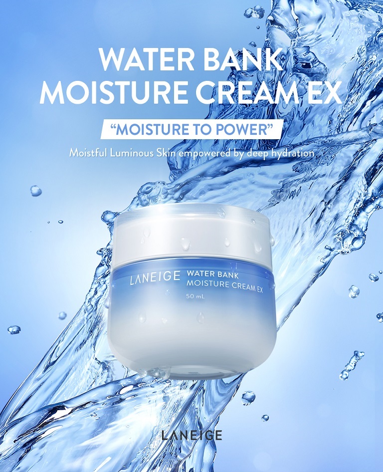 Water Bank Moisture Cream EX - LANEIGE Skincare product ... LANEIGE Thirst For Life Watch on Key Points Water Bank Moisture Cream EX A highly moisturizing cream, providing a healthy moisture layer by strengthening the skin barrier Key Point 1. Skin's moisturizing ability boosted by 'Green Mineral Water'