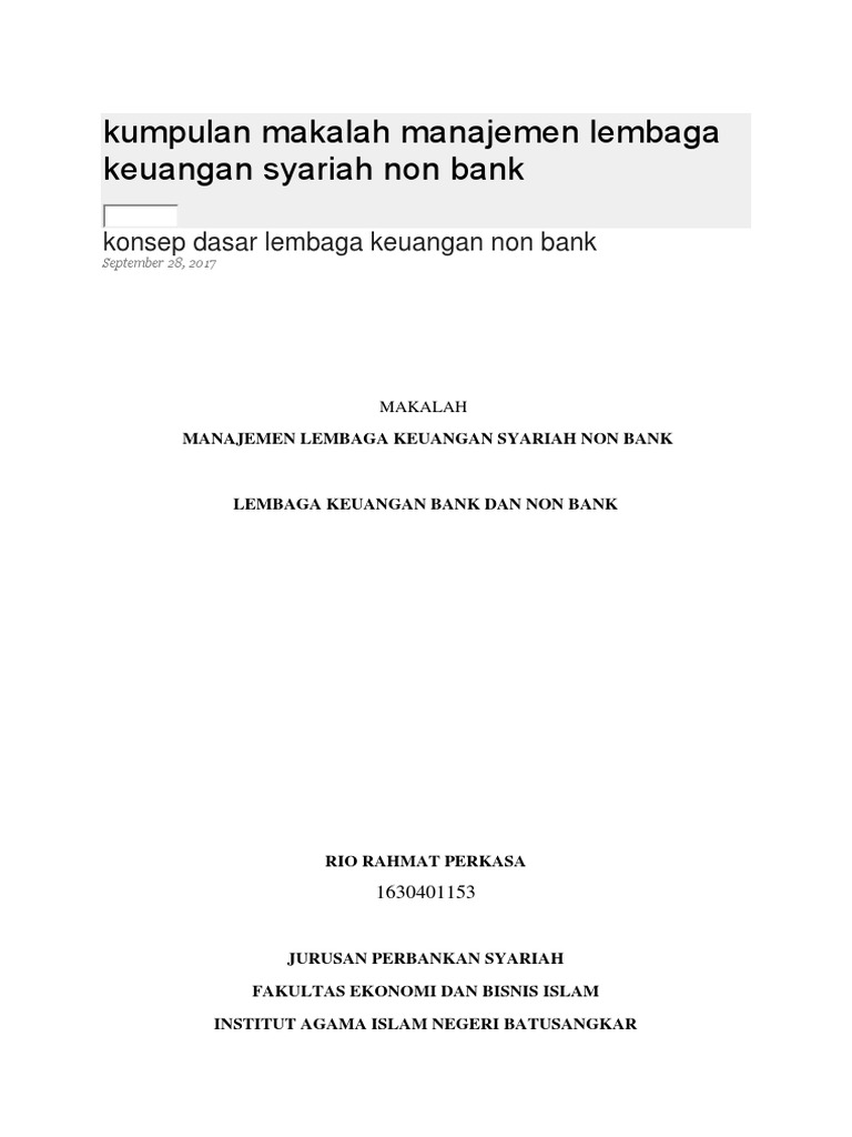 MAKALAH LEMBAGA KEUANGAN NON BANK.pdf - MAKALAH LEMBAGA ... view makalah lembaga keuangan non bank.pdf from aa 1makalah lembaga keuangan non bank disusun oleh : fijar alifyansyah fakultas hukum program studi ilmu hukum universitas djuanda bogor kata