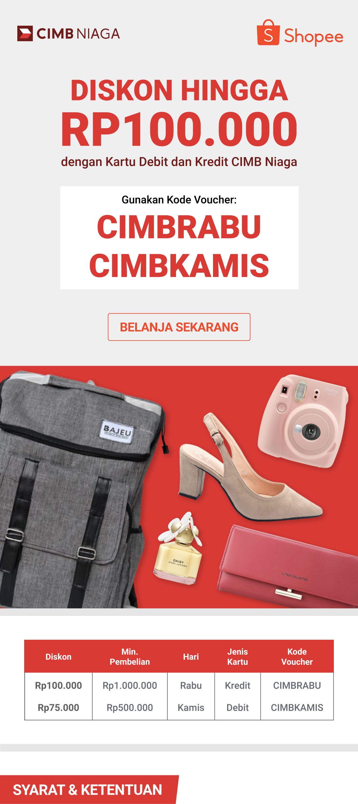 Promo Kartu Kredit CIMB Niaga - Traveloka Nov 30, 2020 · CIMB Niaga solusinya! Khusus pemegang kartu kredit CIMB Niaga, ada kupon istimewa hingga Rp300.000 untuk transaksi Anda berikutnya! Cukup pesan Tiket Pesawat, Hotel, Xperience, atau Eats pakai kode kupon di bawah ini, dan kupon istimewa otomatis dikirim ke email Anda. Yuk, nikmati promonya sekarang sebelum ketinggalan! 10 Promo Kartu Kredit CIMB Niaga Bulan September 2021, Ada ... Promo kartu kredit CIMB Niaga bulan September 2021 yang pertama dan tak boleh dilewatkan adalah promo Pegipegi. Merchant ini memberikan penawaran diskon hingga Rp325 ribu untuk pembelian tiket pesawat, akomodasi, serta promo pembelian tiket kereta dan travel. Promo Kartu Kredit CIMB Niaga Bulan April 2021, Untung Banget! Apr 01, 2021 · Promo kartu kredit CIMB Niaga bulan April 2021 selanjutnya, cocok untuk kamu yang suka belanja kebutuhan perawatan diri di Guardian. Sebab, Guardian ingin memanjakan nasabah CIMB dengan memberikan promo berupa bonus voucher senilai Rp35 ribu dan bisa digunakan di seluruh gerai Guardian Indonesia, kecuali Guardian SIS/Dalam Guardian. Promo Akhir Tahun Garuda Indonesia Bersama Cimb Niaga ... Harga tiket spesial akhir tahun diskon hingga 30% ke rute-rute pilihan Garuda Indonesia. Dapatkan potongan tambahan hingga Rp600.000 dengan menggunakan kartu debit dan kartu kredit Bank CIMB Niaga. Masukkan kode promo PROMOCIMB saat Anda memilih jadwal penerbangan di atau GIA Mobile app.