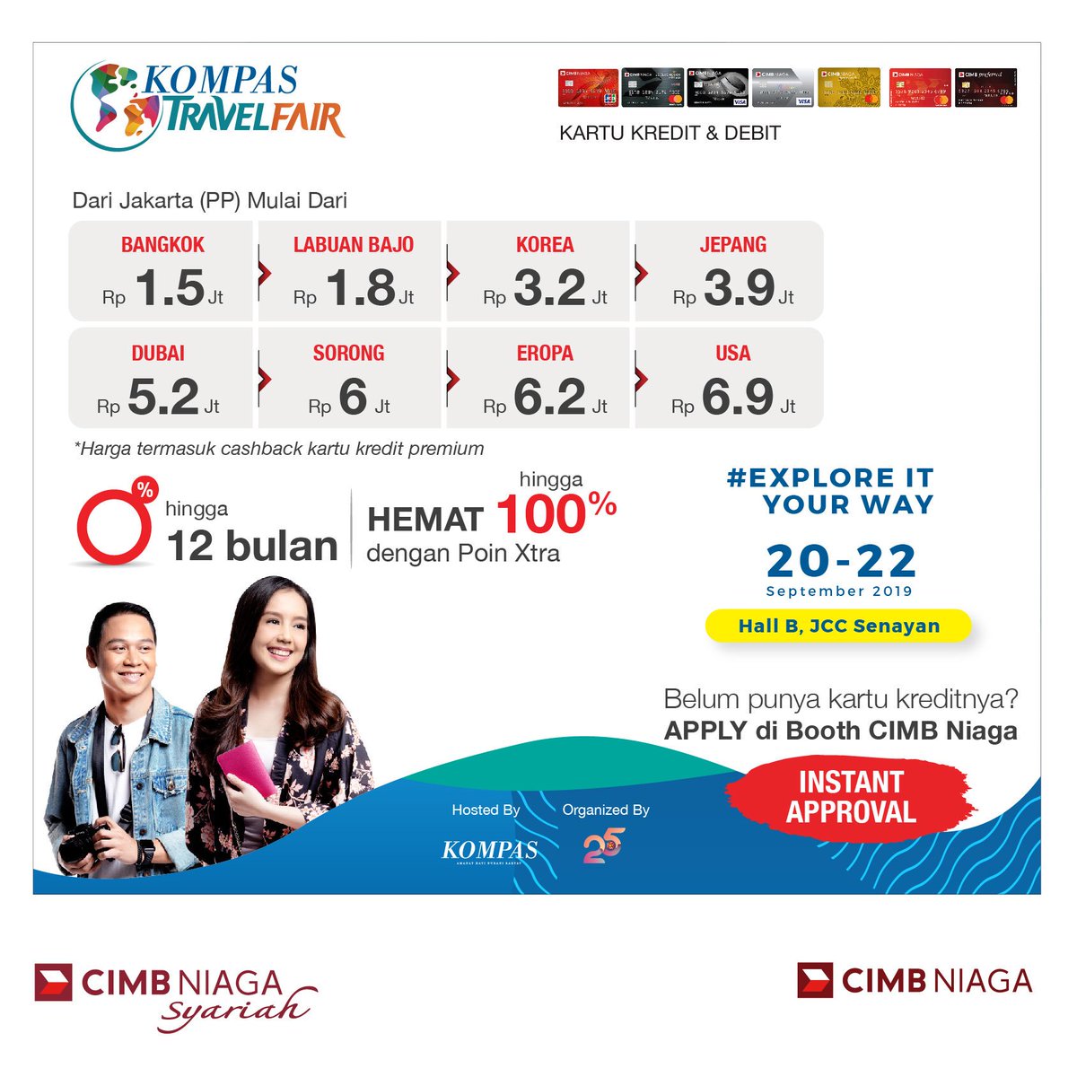 Promo Tiket Pesawat JD.ID Cashback Upto Rp250.000 ... Cashback diperoleh untuk pembelian tiket pesawat rute domestik dan internasional di JD.ID. Promo hanya berlaku dengan pembayaran semua kartu kredit CIMB Niaga kecuali Corporate Card. Cashback berlaku dengan minimum transaksi Rp2.500.000 dengan metode Full payment dan cicilan 0% 3 dan 6 bulan. Promo Kartu Kredit Terbaru | Credit Card Promotion ... Promo Kartu Kredit terbaru, terlengkap, murah dan menarik. Tersedia pilihan promo kartu kredit sesuai dengan kategori bank, brand, jaringan kartu kredit & lainnya