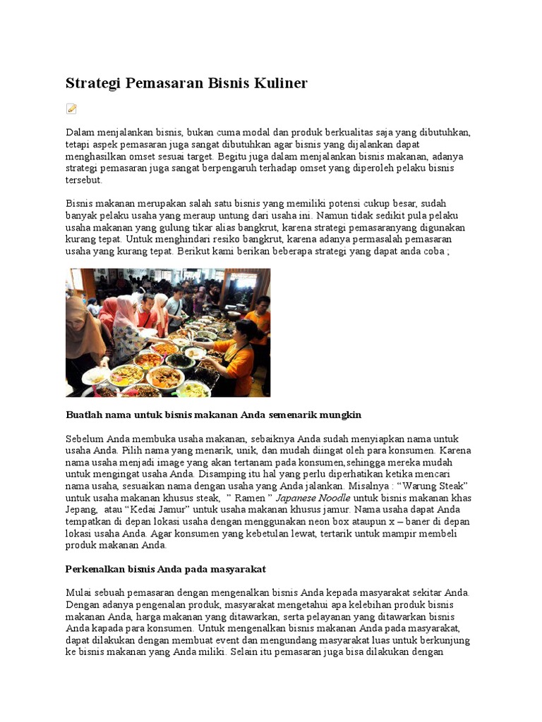 Strate Strategi Pemasaran Bisnis Kulinergi Pemasaran Bisnis Kuliner Strategi Pemasaran Bisnis ... by derinaseptia in Types > Instruction manuals and too all my friend ever happy ending to eating. strategi pem. disini berisi bagaimana memasarkan kuliner yang luar binasa. lezat nya,,, laziznya ke elokan nya. dimana tercipta unsur yang hmm.