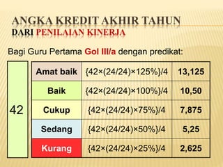 Angka Kredit Guru | PDF Angka kredit adalah satuan nilai dari tiap butir kegiatan dan/atau akumulasi nilai butir-butir kegiatan yang harus dicapai oleh seorang Guru dalam rangka pembinaan karier kepangkatan dan jabatannya. by eri_satria in Types > Presentations and angka kredit guru.