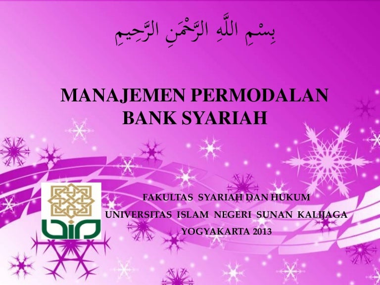 Manajemen Permodalan Bank Syariah - SlideShare Manajemen Permodalan Bank Syariah 1. ِ ِ َّ ِ ْ َّ ِ ِ ْ بِسم اللَّه الرْحَن الرحيم MANAJEMEN PERMODALAN BANK SYARIAH FAKULTAS SYARIAH DAN HUKUM UNIVERSITAS ISLAM NEGERI SUNAN KALIJAGA YOGYAKARTA 2013 Powerpoint Templates Page 1 2. TINGKAT KESEHATAN PERBANKAN Powerpoint Templates Page 2 3.