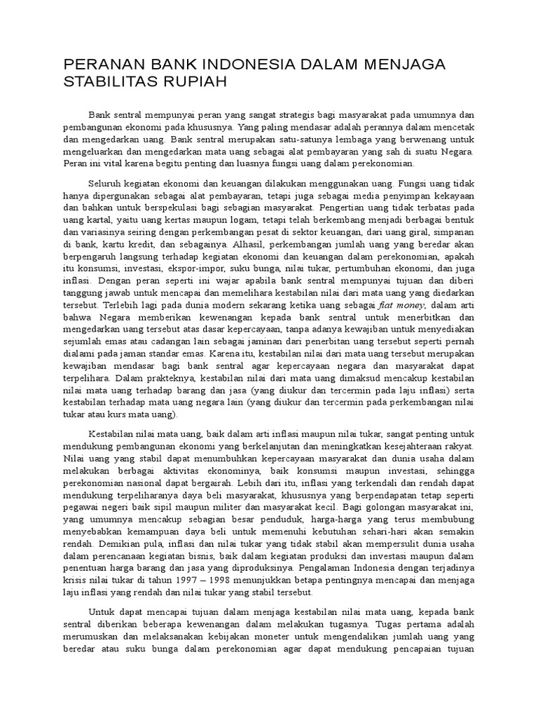 Peran bank sentral dalam perekonomian. Dunia Baru: Makalah Peranan Bank Sentral Dalam Sistem Pembayar Dalam perekonomian modern setiap negara memiliki Bank Sentral atau Peran bank sentral akan tercermin dari tugas pertama yang diembannya, yaitu menetapkan dan melaksanakan kebijakan moneter, mengatur dan mengawasi bank, serta menjaga kelancaran system pembayaran. Peran Bank Indonesia Dalam Perekonomian Indonesia - Kelas Pintar Kira-kira, apa saja ya peran bank Indonesia dalam perekonomian Indonesia? Dalam hal ini peran Bank Indonesia adalah memelihara cadangan devisa yang ada dengan menerapkan dua sistem, yaitu : Internal Peran ini bisa digolongkan sebagai peran tradisonal Bank Indonesia sebagai Bank sentral. Peran bank indonesia dalam menstabilkan... Peran Bank Sentral dalam suatu negaralah yang merupakan kunci dalam menstabilkan ekonomi. Indonesia pernah mengalami kemerosotan ekonomi moneter pada tahun 1997-1998 ketika itu merupakan masa yang sangat sulit dihadapi negara Indonesia karena ketidakstabilan dan... Peran, status, kedudukan, tujuan dan tugas bank... 4 4 Mengenal Bank Sentral Dalam definisi yang paling sederhana, bank sentral adalah bank yang memegang simpanan bank lain dan Peran bank indonesia dalam menjaga stabilitas perekonomian. 20 Mencapai dan Memelihara Kestabilan Nilai Rupiah Tugas Bank Indonesia 20...